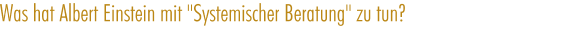 In der "Systemischen Beratung" werden Fragestellungen, Anliegen oder als schwierig und konflikthaft erlebte Situationen aus verschiedenen Ebenen der Beziehung, die die Beteiligten (Elemente) haben, betrachtet. Hierbei ist es wie in der Physik: Je nach Standort finden Sie auf die scheinbar gleiche Frage mehrere "richtige" Antworten. Der Standort definiert sich hier durch das System, durch das Element und seine Beziehungen zu anderen Elementen.